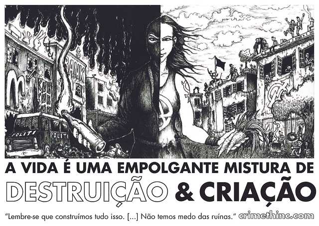 Preparamos um cartaz juntando imagem e texto de nossos antepassados, cristalizando a maneira como as gerações anteriores de anarquistas enxergavam a relação entre a resistência à ordem existente e a construção de alternativas à ela. Abaixo traçamos a história de cada elementos do cartaz.